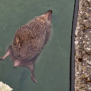 L’eau, parfaitement douce et limpide attire de nombreux oiseaux, canards et même parfois de petits mammifères tel ce hérisson qui s'y était perdu. Heureusement, il nage très bien et a été recueilli rapidement 😀