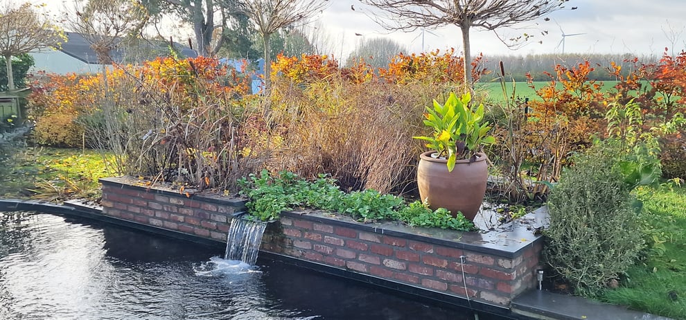Autre avantage, la circulation continue de l’eau dans le bassin par la pompe et cette petite cascade permet à l’eau de mieux absorber l’oxygène.